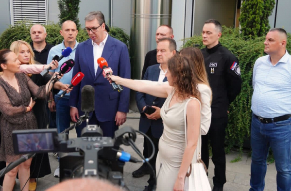 "Ловимо их знамо и имена и све друго. Обавићемо тај посао. Важно да је Милош Јевремовић жив и показао је како се поступа. Нећемо имати милости према тероризму", рекао је председник Вучић.