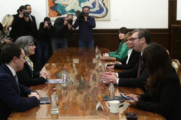 Председник Републике Србије Александар Вучић примио је данас амбасадорку Уједињеног Kраљевства Шан Маклеод, са којом је разговараo o билатералним односима, току дијалога Београда и Приштине, наставку европског пута Србије, као и рату у Украјини.