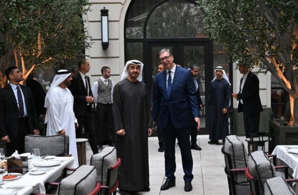 Председник Србије Александар Вучић разговарао је са председником Уједињених Арапских Емирата шеиком Мухамедом бин Заједом ел Нахјаном о ширењу економске сарадње, новим инвестиционим могућностима, унапређењу авио-повезаности, као и конкретним пројектима у области туризма, инфраструктуре и енергетике.